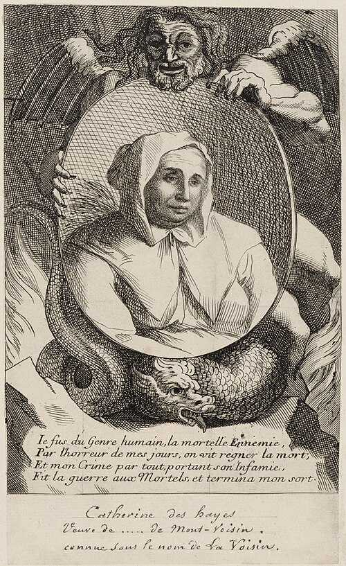 Poisoner, fortune-teller, and abortionist in 17th-century Paris, Catherine Deshayes was the central figure of the Affair of the Poisons (1679–1682). Supplying poisons, love potions, and black masses to an aristocratic clientele, she was burned alive at the Place de Grève in 1680.